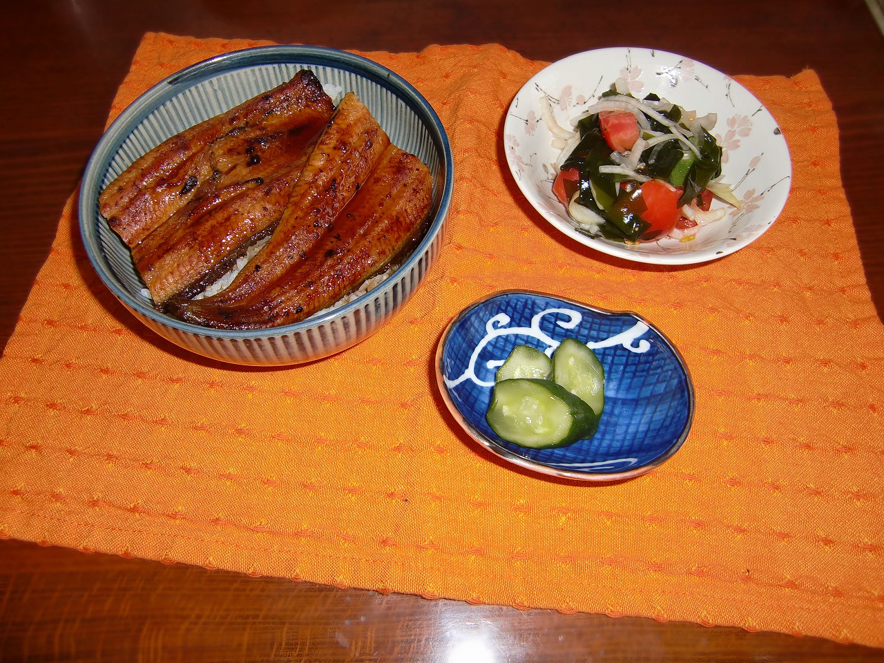 ちなみにこの日の献立は「うな丼」、「トマトとワカメのポン酢あえ」、「きゅうりのぬか漬け」でした。