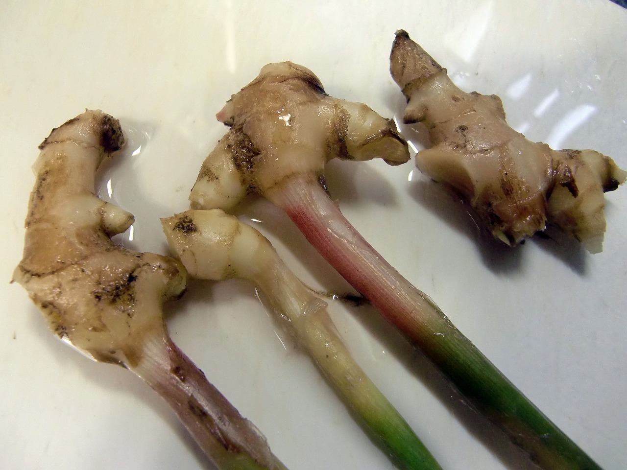 よくよく見ると、買ってきた古い生姜も置いておくと根が出ているんですね。これを土に植えれば葉が出てきて柔らかい葉生姜ができるのでは?
