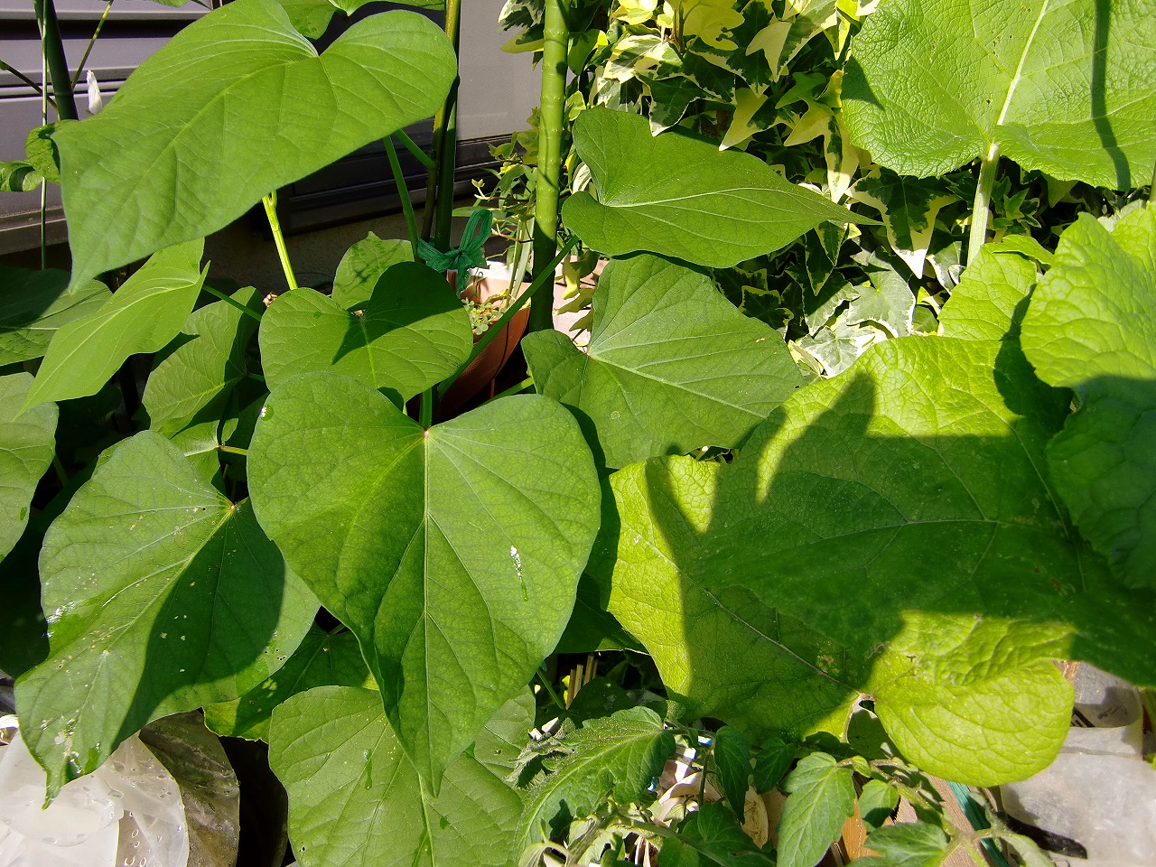 サツマイモはドンドンつるが伸びてきました。サツマイモの葉って大きいですね。