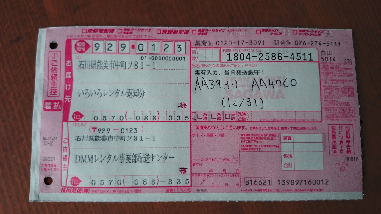 返す時は返す日の5時までに配送業者に引き渡すことが重要です。それを過ぎると延滞料金を取られてしまいます。