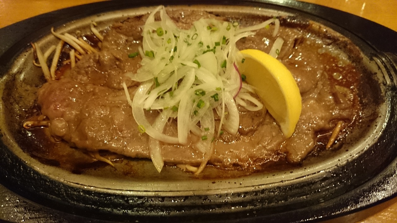 ステーキといっても、一般的に言われるステーキとはちょっと違っていました。焼肉のような薄い牛肉が何枚も重なっているのです。