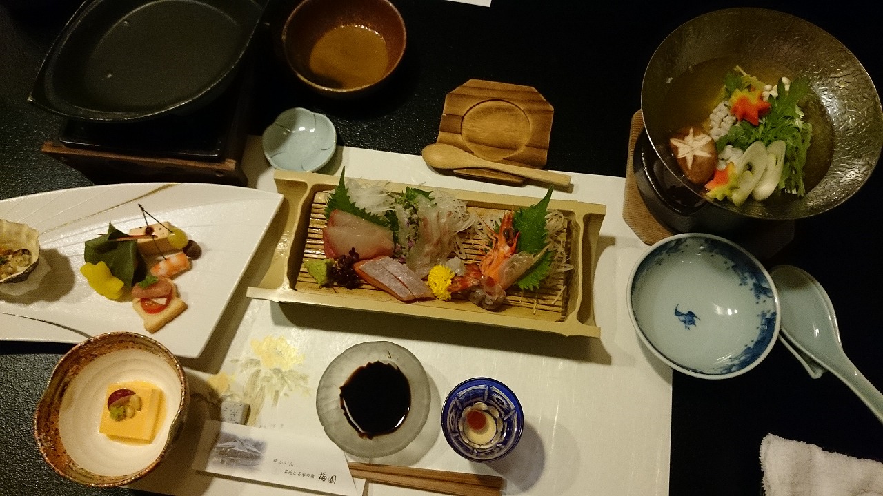 刺身あり、牛肉あり、鍋物あり、蒸し物、焼き物純和風のお料理が盛りだくさんでした。デザートまでいくともうお腹が一杯で動けなくなりそうなくらいでした。