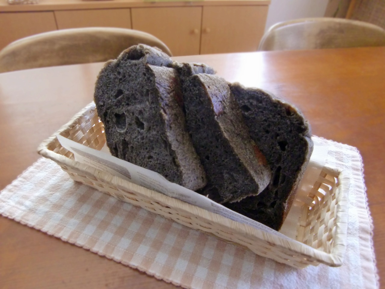 中も真っ黒です。黒ごまのパンになっています。食べてみましょう。