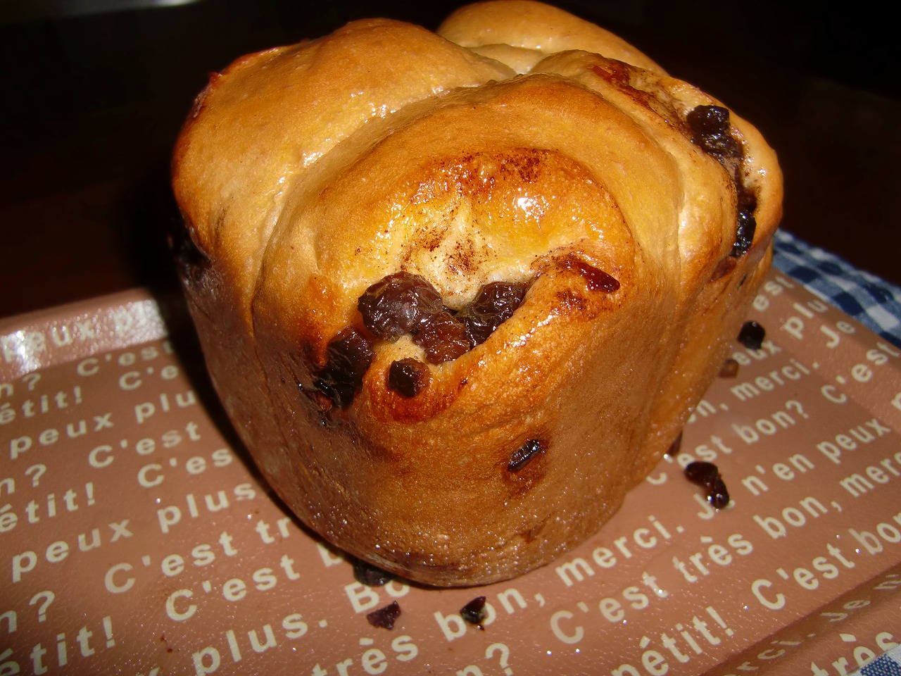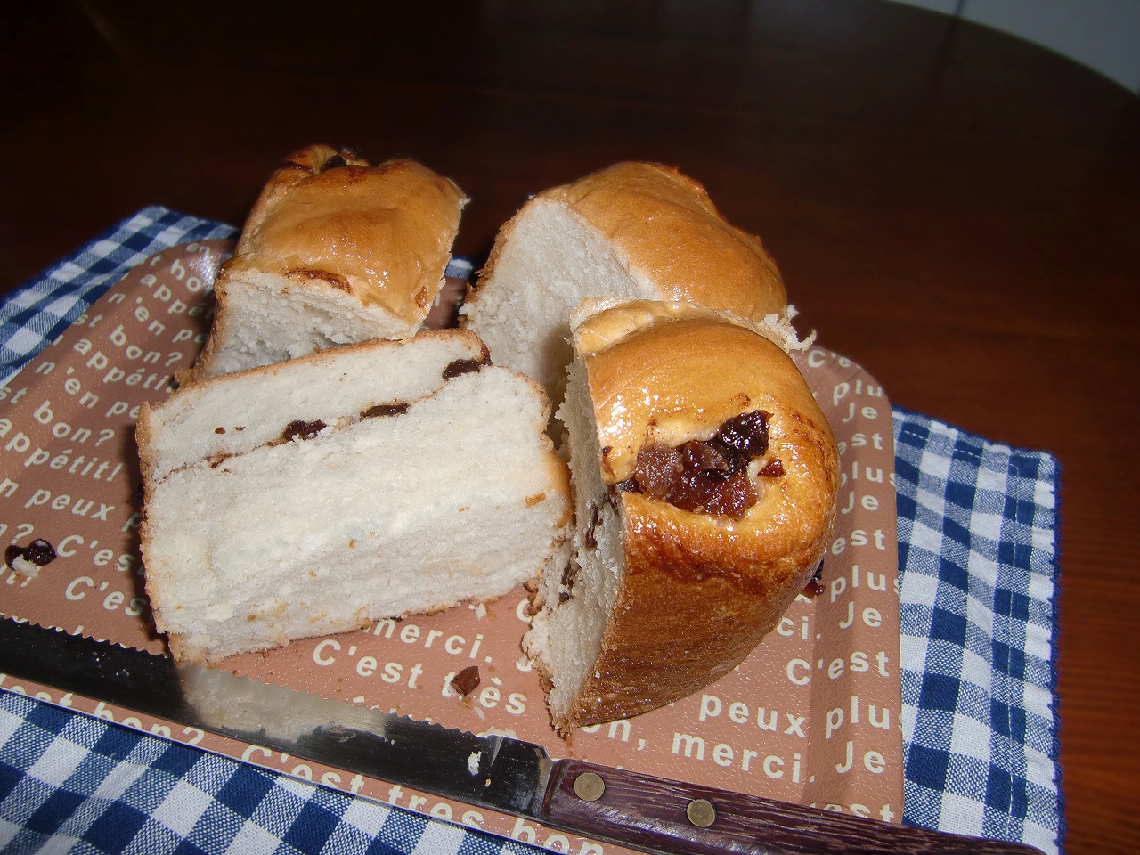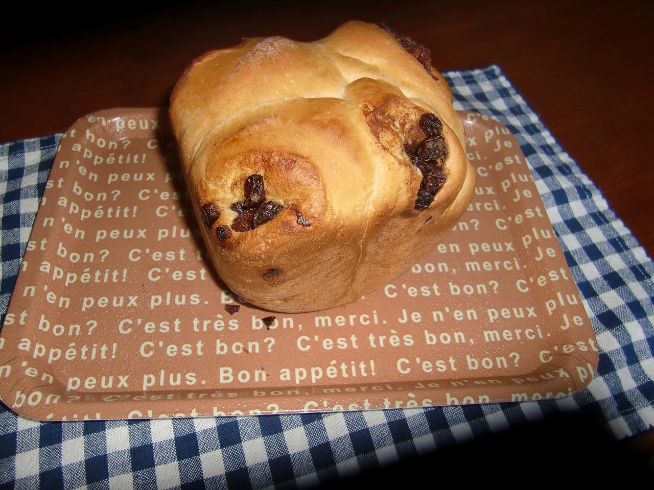 ちょっと甘くてシナモンの香りがするとっても美味しいパンに出来上がりました。そういえば、パン屋さんでこんなパン、見かけたことがあります。