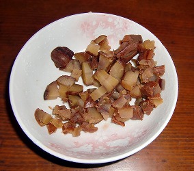 4.ピピと鳴ったら、今度は材料の栗の渋皮煮を入れます。
