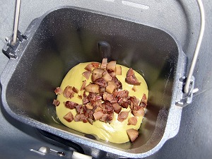 1.後入れバター、栗の渋皮煮、ドライイースト以外をケースに入れる。