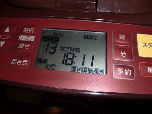 入れたら再度スタートを押します。出来上がり時間が表示されます。
