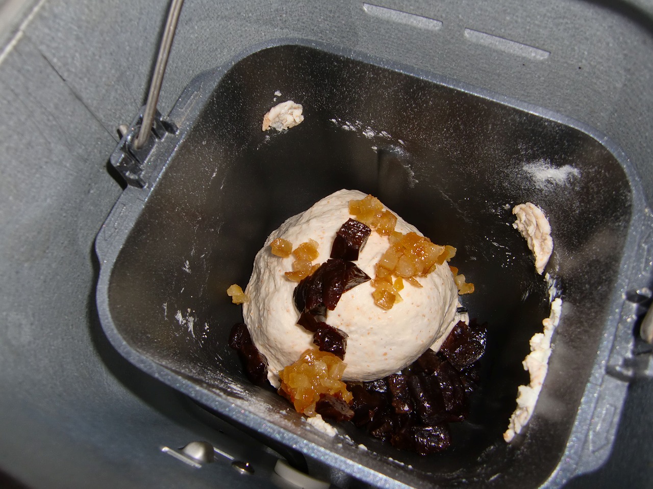 砂糖を少なくしたのは、オレンジピールとドライプルーンを具材として入れたかったからでした。