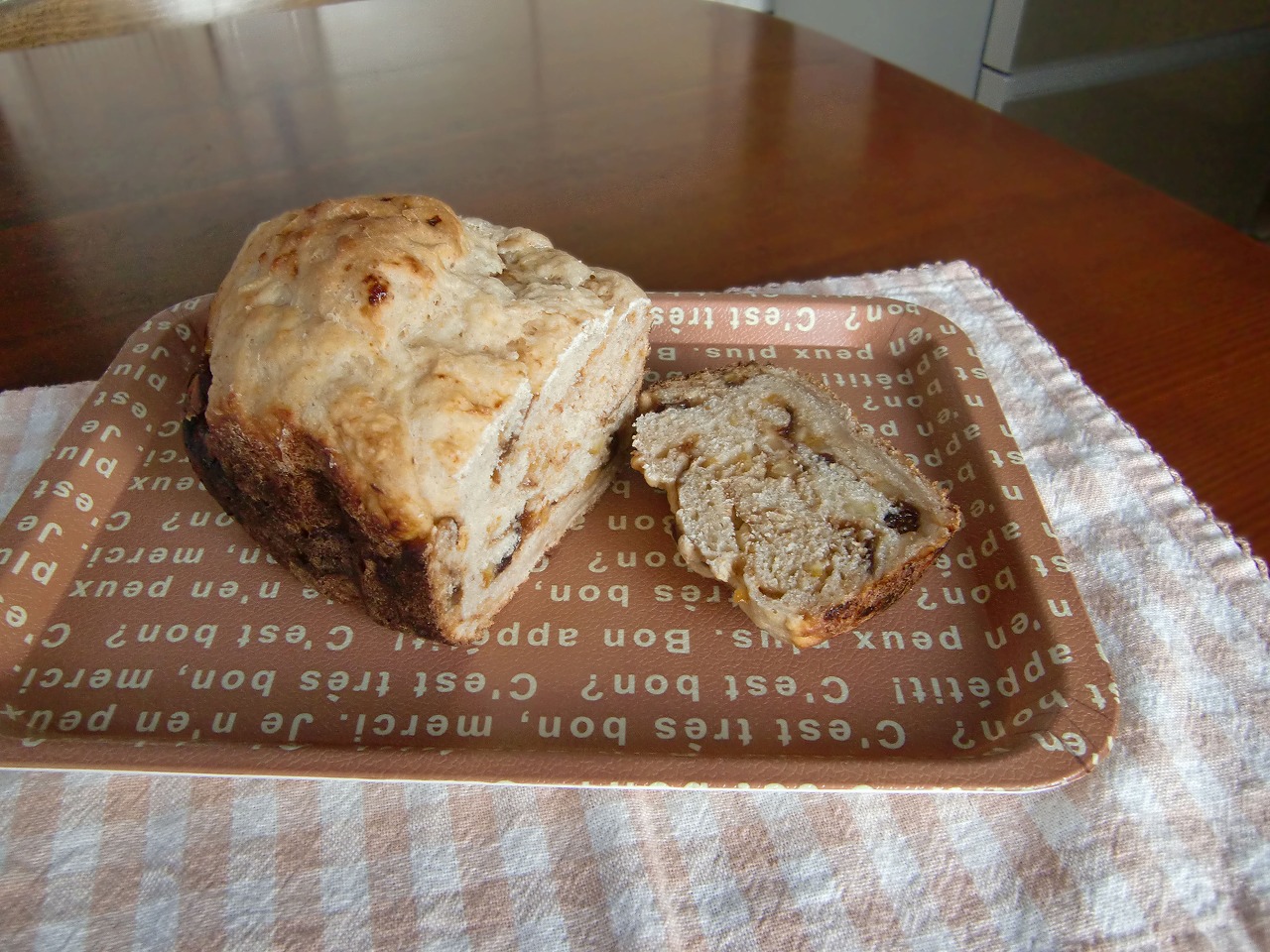 やはり酸っぱいですね。オレンジピールとドライプルーンの所は甘いのですが、生地はちょっと酸っぱいです。