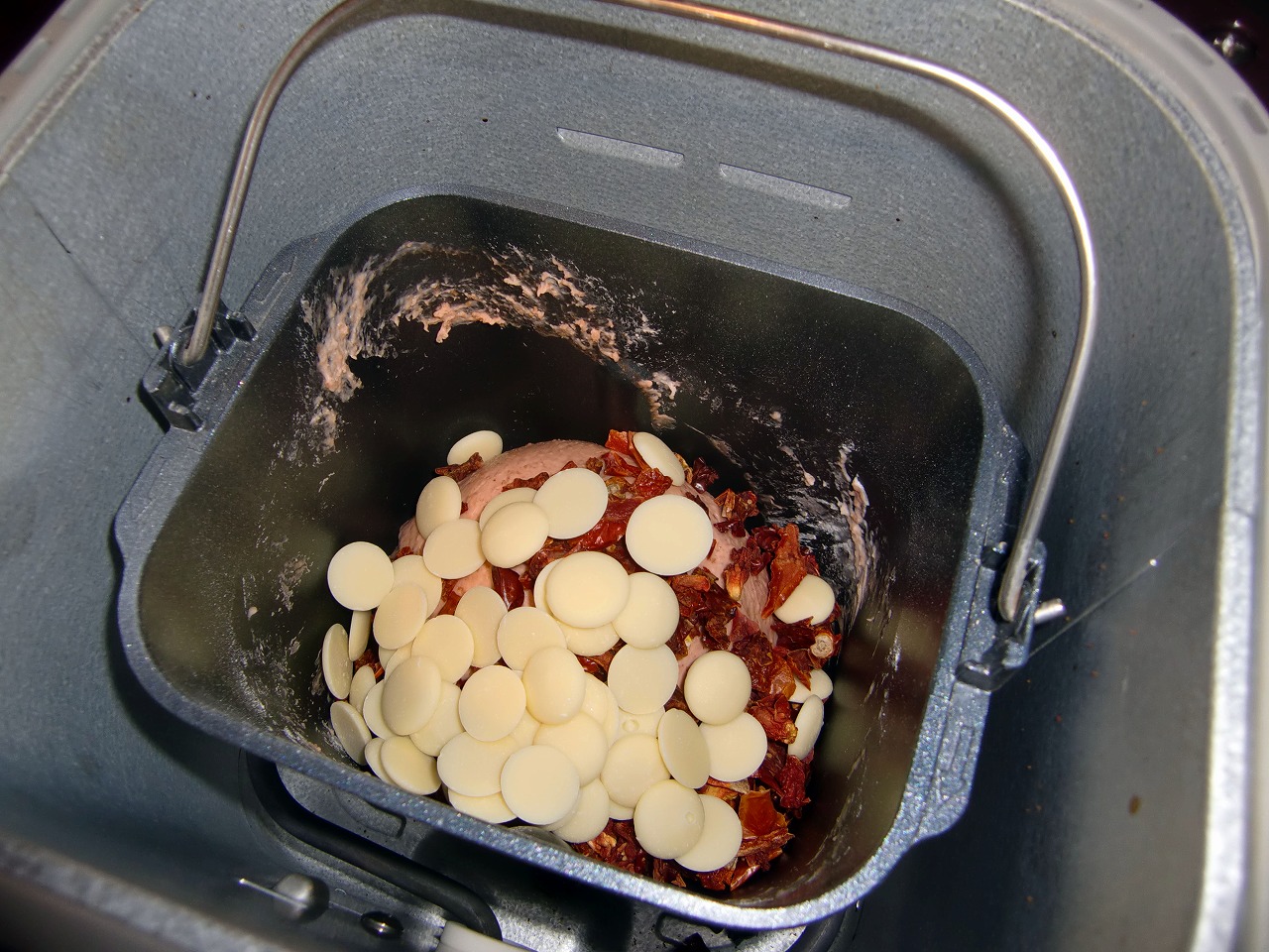 3.ピピと鳴ったら、ドライトマト、ホワイトチョコを入れて、再度スタートする。
