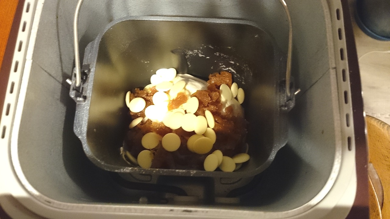 1.ダイダイ、ホワイトチョコ,ドライイースト以外をケースに入れる。