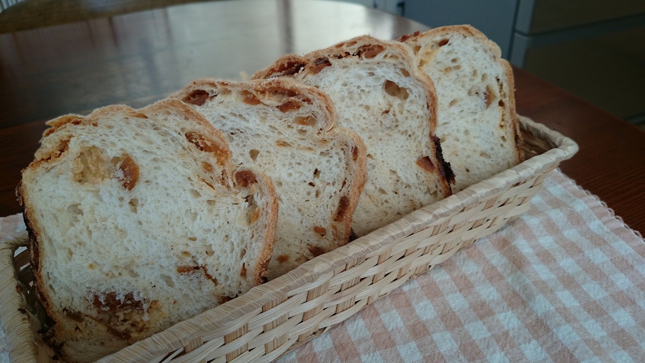 パナソニックのホームベーカリー〔SD-BMT1000〕で焼いています。
