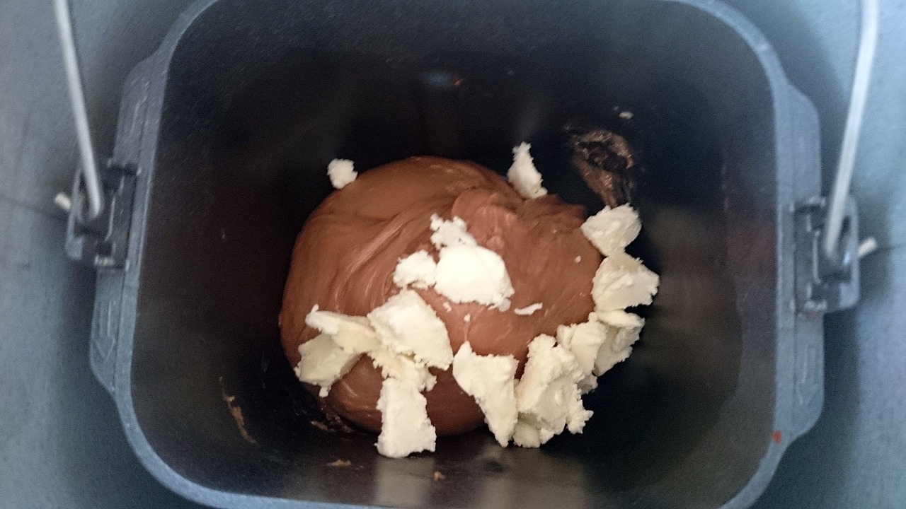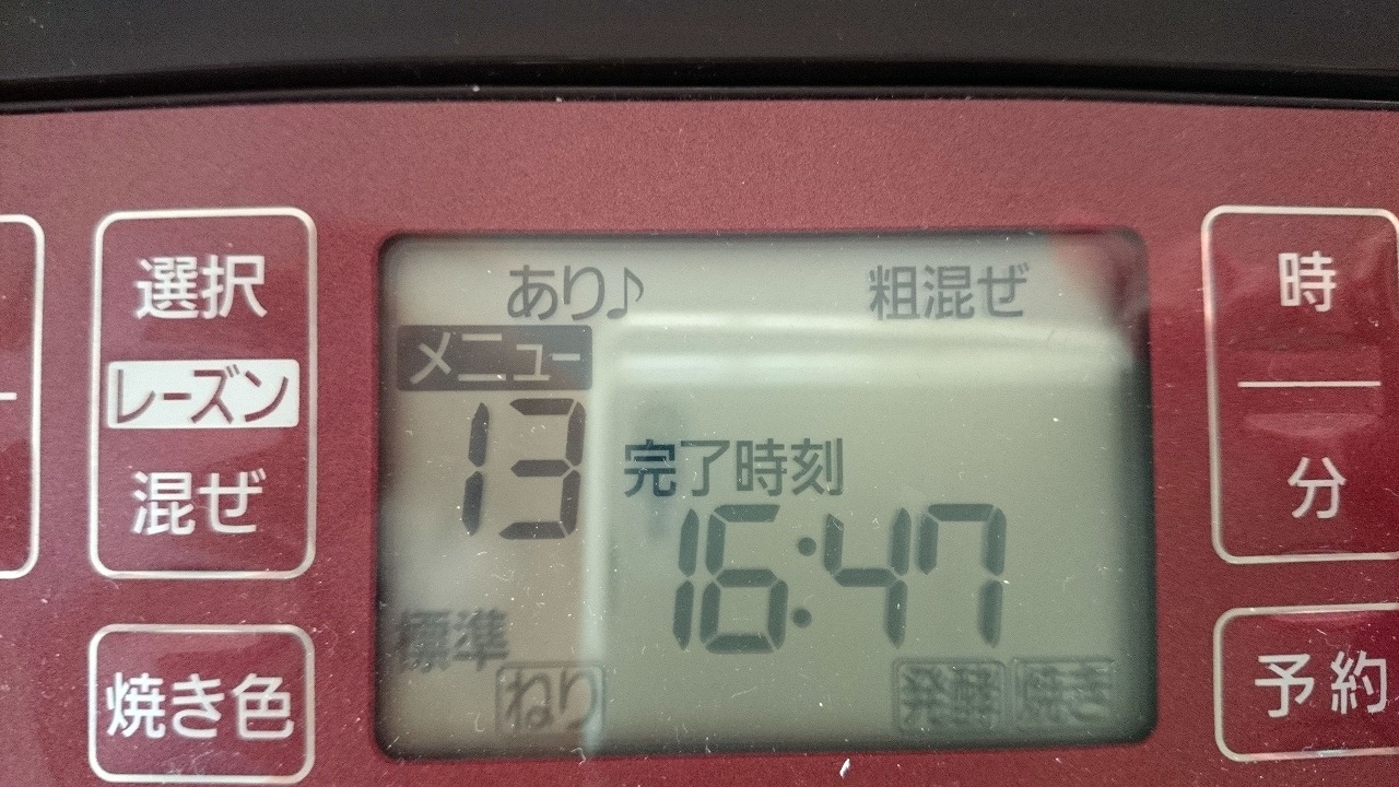 3.35分後に作業ありと出ています。ピピと鳴ったら、後入れバターを入れます。蓋を閉めて再度スタートします。