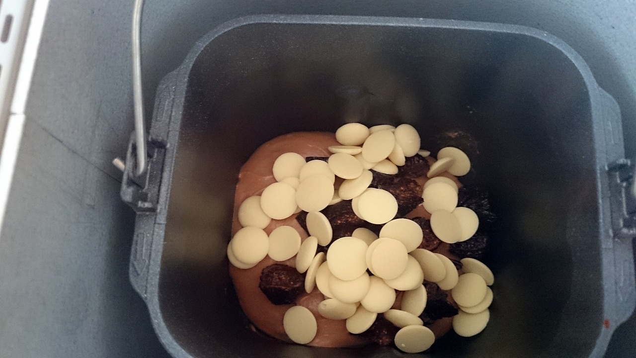 4.今度は24分後に材料投入と出ます。ピピと鳴ったら、ドライイチジクとホワイトチョコを入れます。