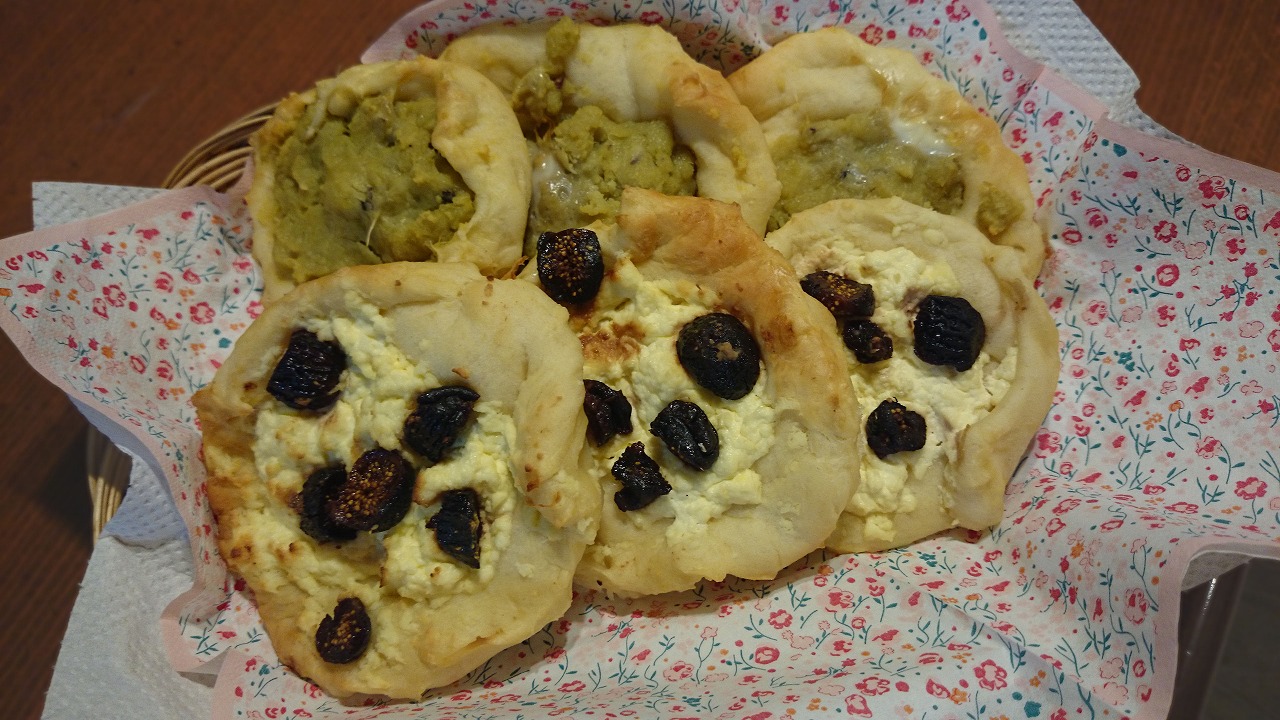 写真は手前のがクリームチーズとドライイチジクをトッピングして、後ろのはサツマイモだけです。