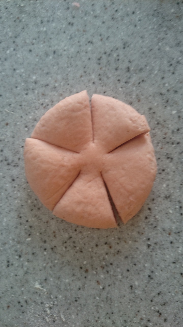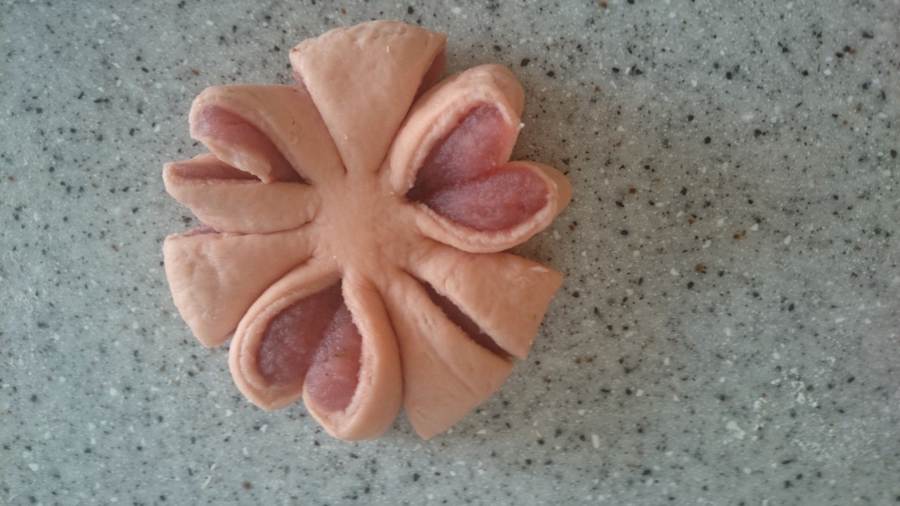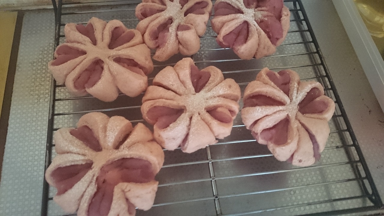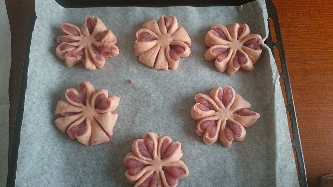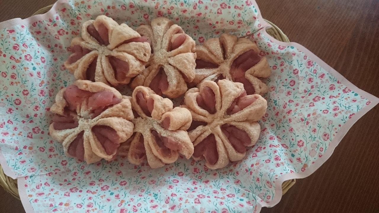 桜の季節がやってきました。となると、春らしい桜の花びらを思わせるようなパンが作りたくなります。