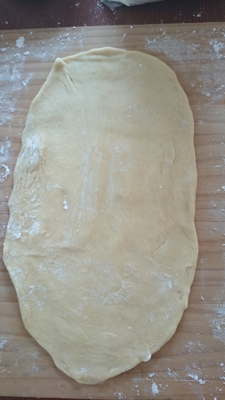 4.ベンチタイムが終わったら、麺棒で生地を伸ばします。