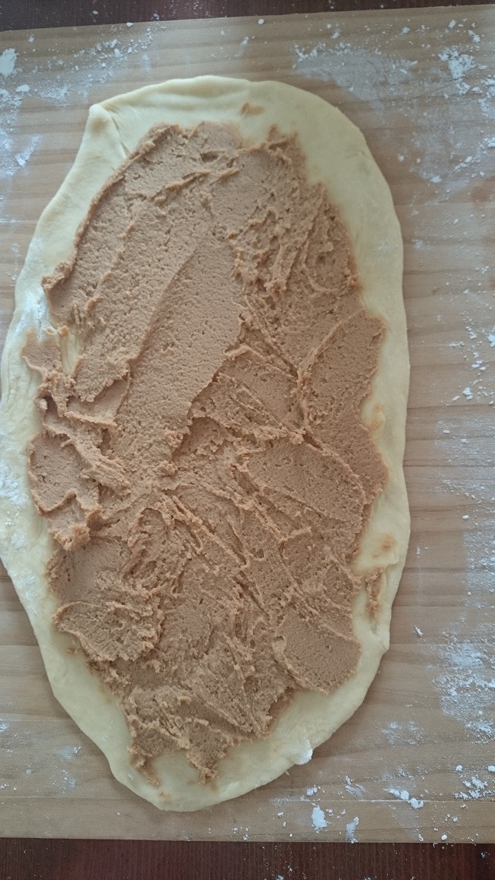 そこで、きな粉クリームにして、出来上がった生地に巻き込んでしまったらどうだろうか。