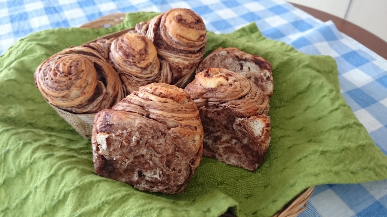 中はチョコのマーブル模様になって美味しそうですね。たまにはこんなちょっぴり甘いパンもいいですよね。