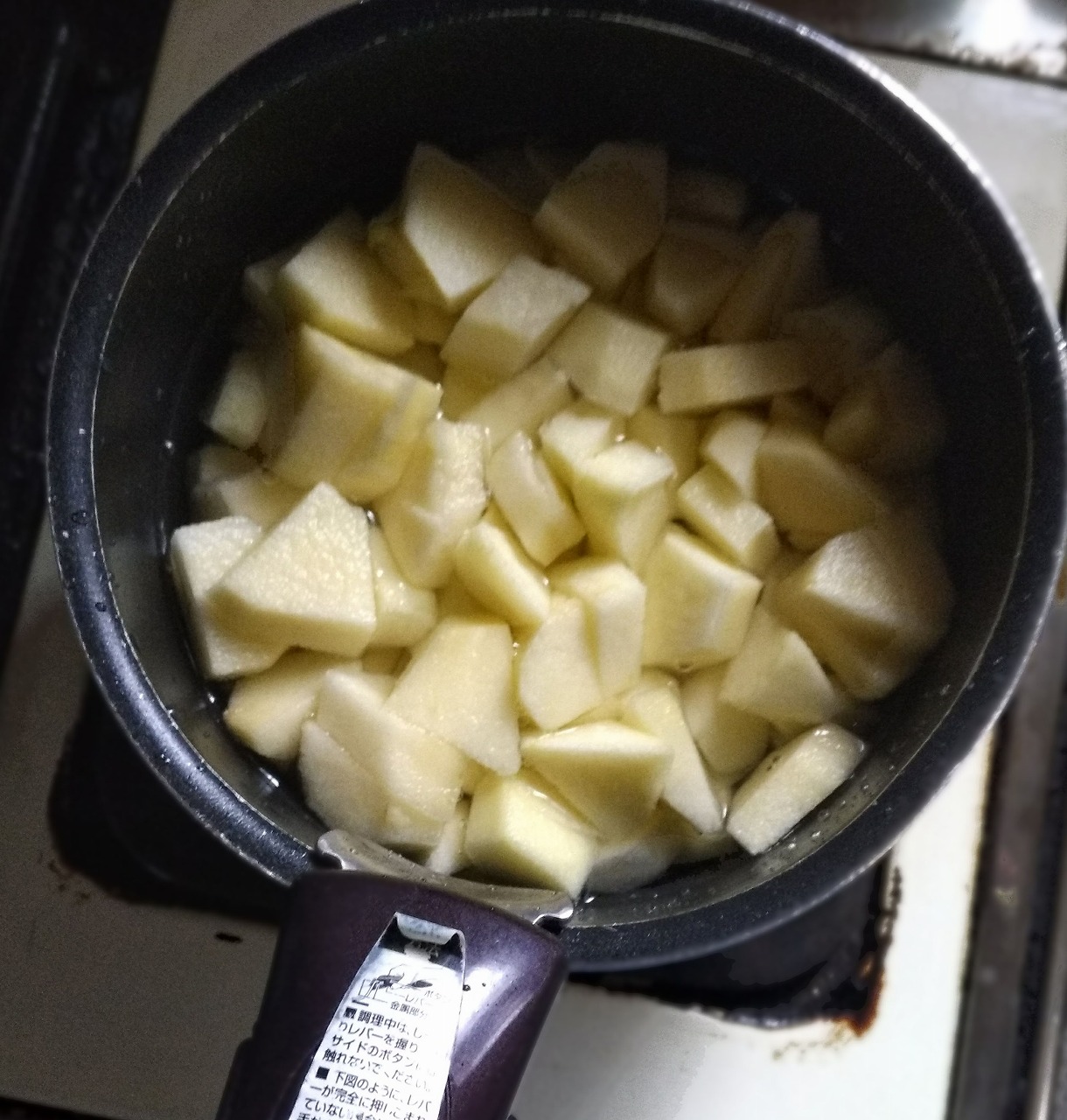 鍋にひたひたの水を入れて砂糖を加え、煮るだけです。クタクタになるくらいで止めておきます。