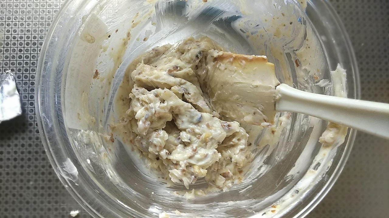 クリームチーズはかなり前から室温に戻しておきます。これと分量の蜂蜜を良く練っておきます。