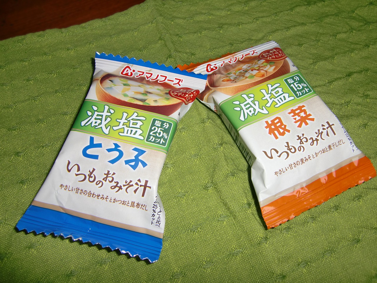 「インスタントの味噌汁は便利でいいのだけれど、塩分がね」という方は減塩味噌汁を選ぶといいですよ。「だし」はちゃんと出ていて、塩分は控えめにしてあるので、高血圧で塩分を控えているような人でも大丈夫です。
