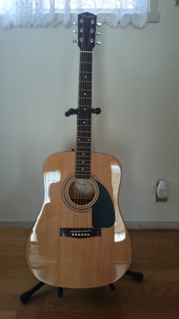 いたって普通のギターですが、新品なのでやはり音はいいです。ちなみにギタースタンドはここで購入したものではありませんが、あると便利ですよね。